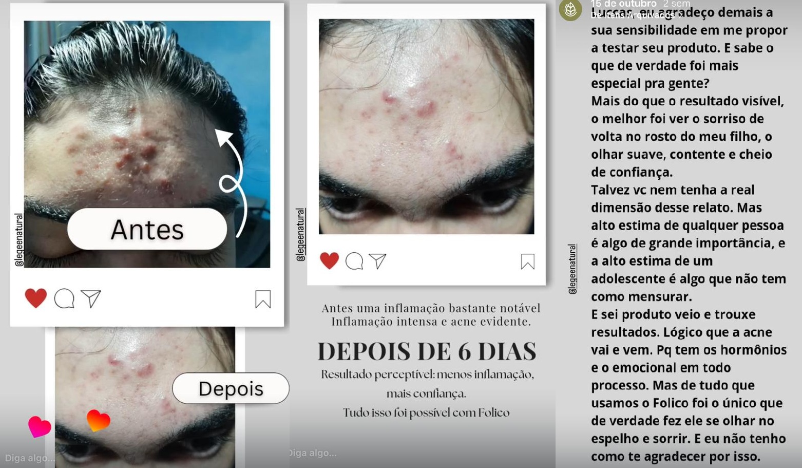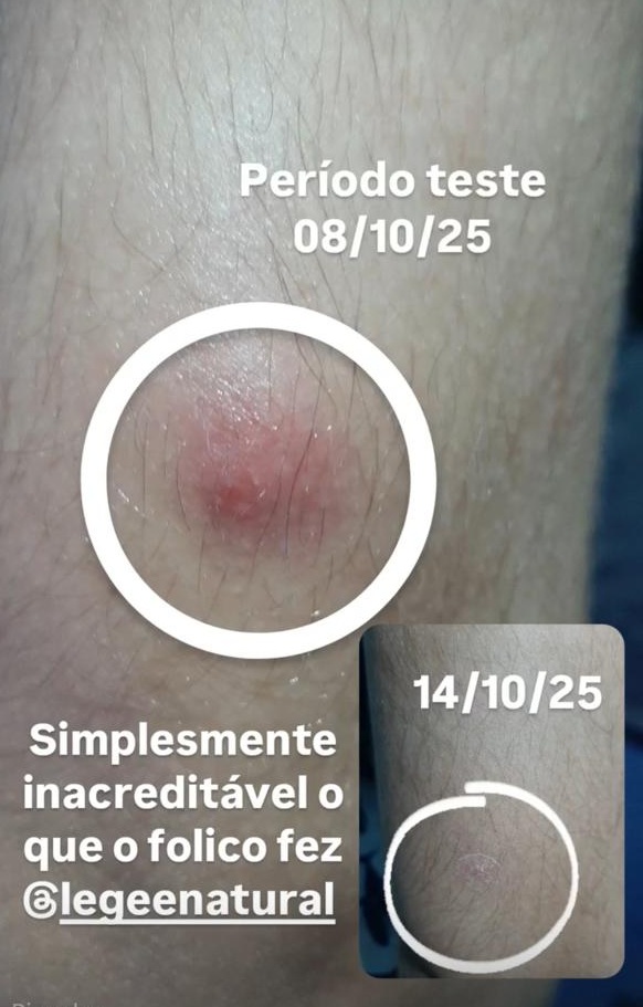 Com a pele limpa e seca, aplique 2 vezes ao dia, de 2 a 3 gotas do Folico diretamente nas áreas com acne e massageie até completa absorção.